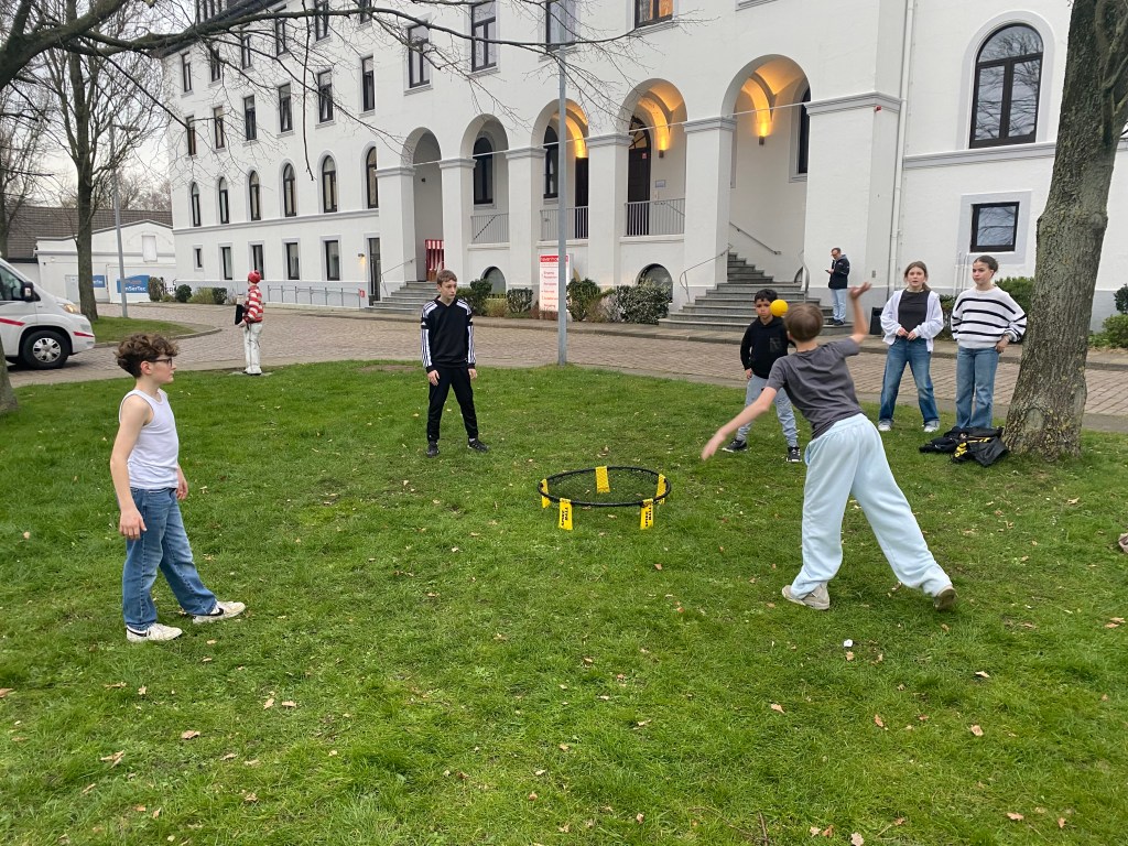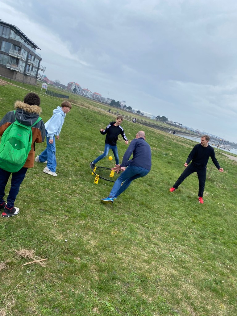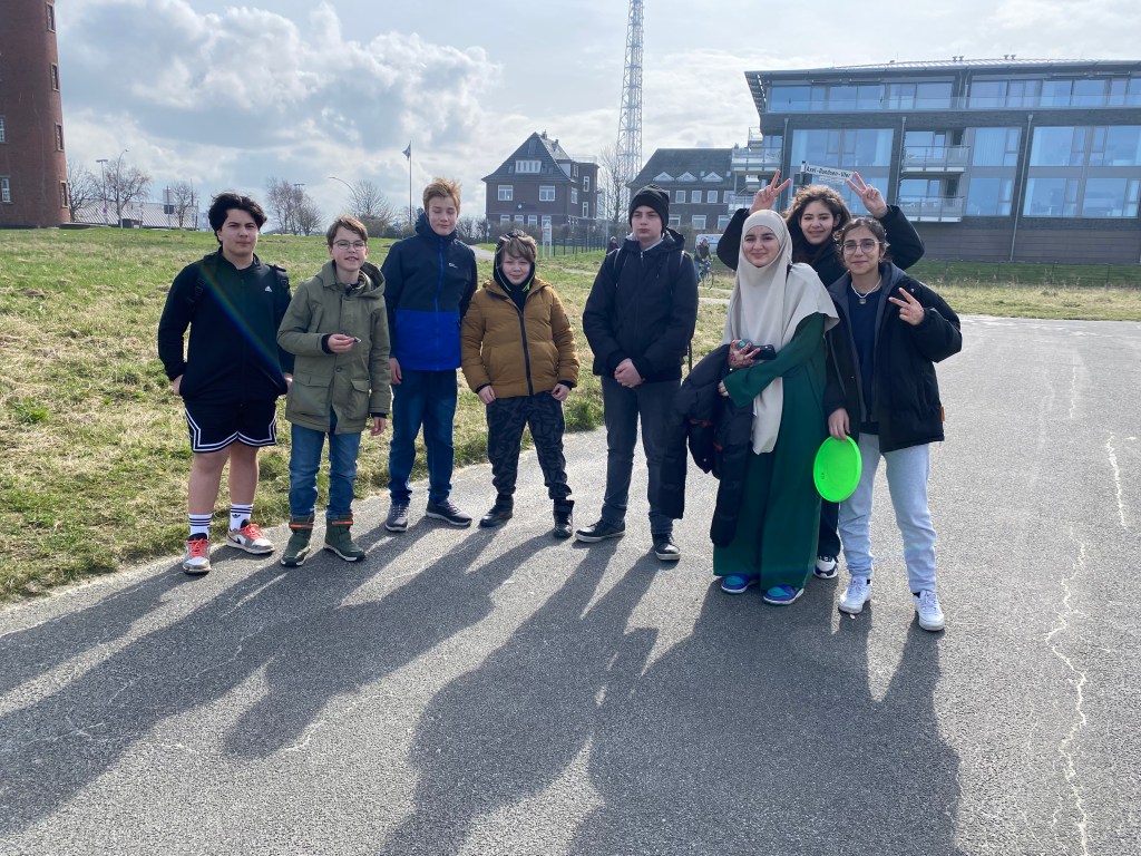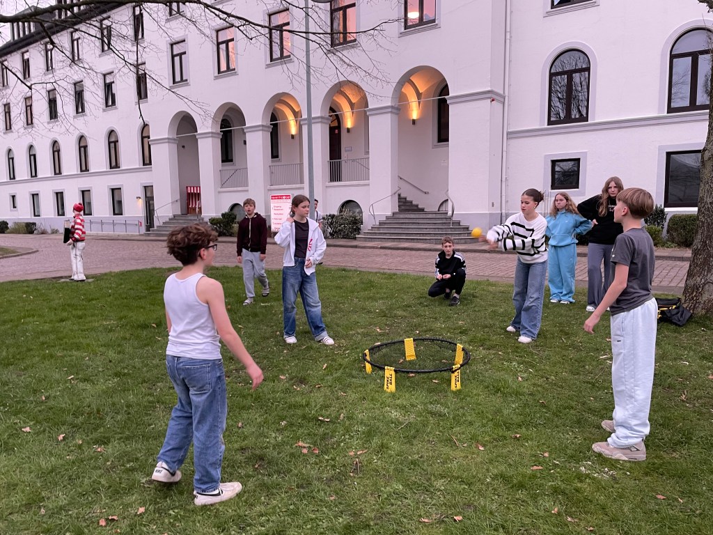 Heute ging’s für die Meute nach Cuxhaven. Die ersten 70 Siebtklässler besuchten um 11 Uhr das Wrack- und Fischereimuseum Cuxhaven, der andere Teil war am Nachmittag dran. So genossen alle ganz viel Freizeit. Hier wurde Wikingerschach, Frisbee oder Spikeball gespielt, viel Eis gegessen – die Sonne zeigte sich durchaus mal – und Fischbrötchen vertilgt. Gegen 17 Uhr waren wir zurück im Hostel. Hier wurde getanzt, Basketball, Frisbee, Spikeball oder Fußball gespielt und sehr häufig gefragt: „Herr/Frau .. – Kann ich Edeka?“, damit man den nächtlichen Zuckerschock vorbereiten kann. Im Anschluss an das Abendessen ist eine motivierte Gruppe zu einer kleinen Nachtwanderung aufgebrochen, andere spielen Werwolf oder verbessern an einigen mutigen Jungs ihre Schminkfähigkeiten…
