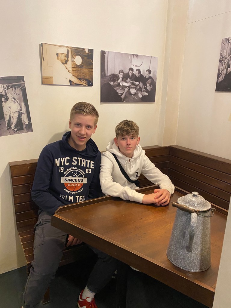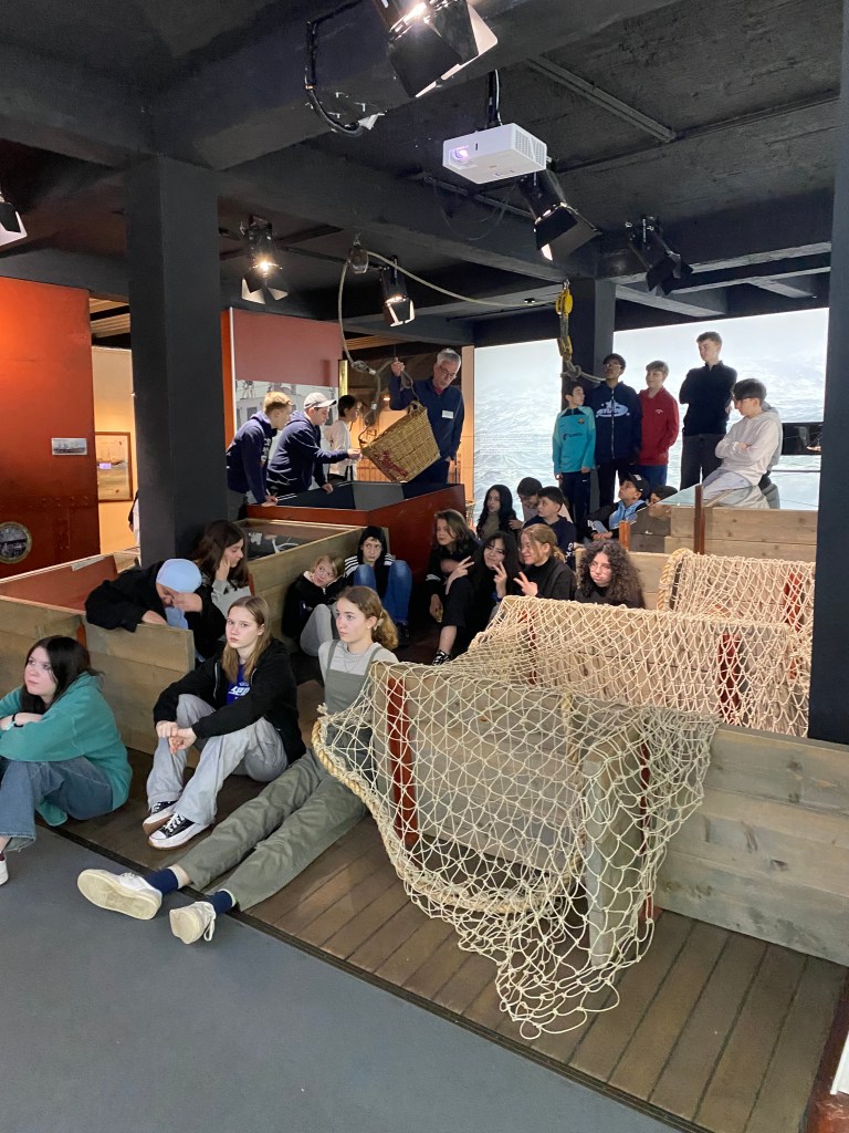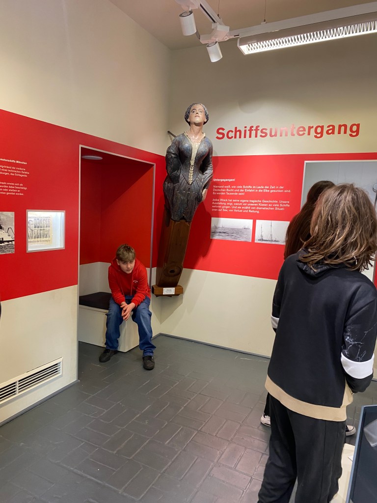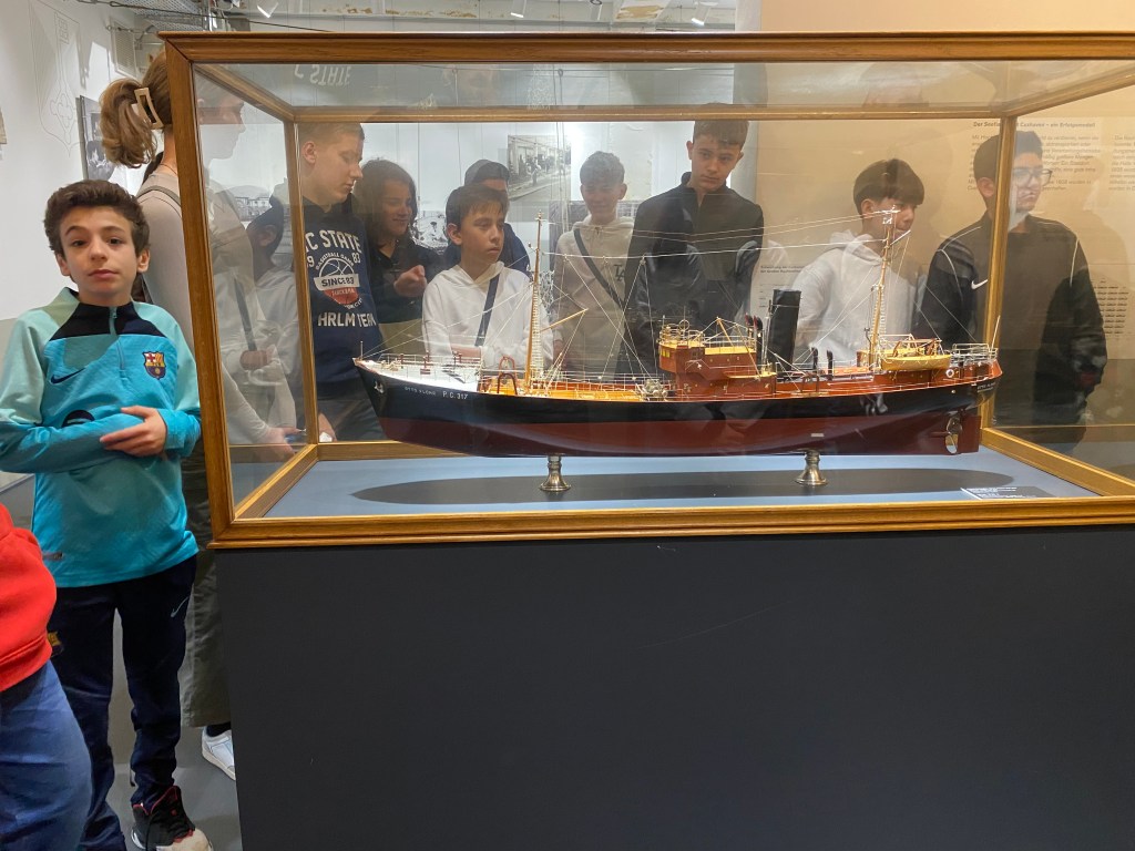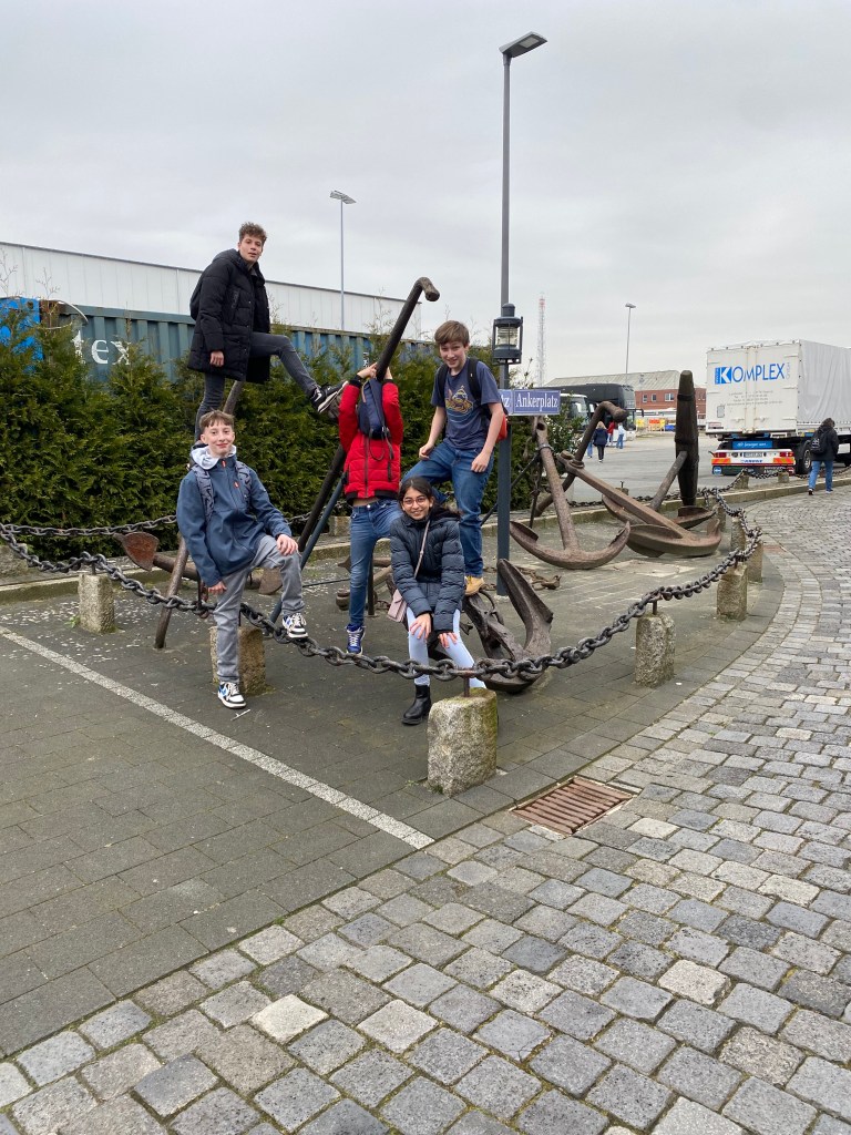 Heute ging’s für die Meute nach Cuxhaven. Die ersten 70 Siebtklässler besuchten um 11 Uhr das Wrack- und Fischereimuseum Cuxhaven, der andere Teil war am Nachmittag dran. So genossen alle ganz viel Freizeit. Hier wurde Wikingerschach, Frisbee oder Spikeball gespielt, viel Eis gegessen – die Sonne zeigte sich durchaus mal – und Fischbrötchen vertilgt. Gegen 17 Uhr waren wir zurück im Hostel. Hier wurde getanzt, Basketball, Frisbee, Spikeball oder Fußball gespielt und sehr häufig gefragt: „Herr/Frau .. – Kann ich Edeka?“, damit man den nächtlichen Zuckerschock vorbereiten kann. Im Anschluss an das Abendessen ist eine motivierte Gruppe zu einer kleinen Nachtwanderung aufgebrochen, andere spielen Werwolf oder verbessern an einigen mutigen Jungs ihre Schminkfähigkeiten…